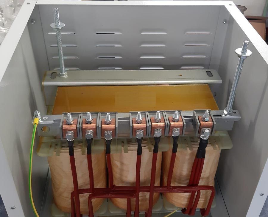 S.V.T. three-phase transformers and three-phase autotransformers are designed and manufactured using high-grade low-loss materials and with various magnetic core architectures according to the customer's specifications (90º and 45º interlocked jointed laminations, cores with planed joints, with air gap, etc.). The energy of a three-phase system can be transformed either by means of three appropriately connected single-phase transformers, thus creating a three-phase bank, or by means of a three-phase transformer that has the power equal to the sum of the powers of the three single-phase transformers.Therefore, three-phase transformers are to be considered as three independent, single-phase electrical windings, each consisting of one phase. Three-phase autotransformers, unlike three-phase transformers, have a single winding and therefore do not have galvanic separation and, therefore, do not require galvanic separation between the two windings.